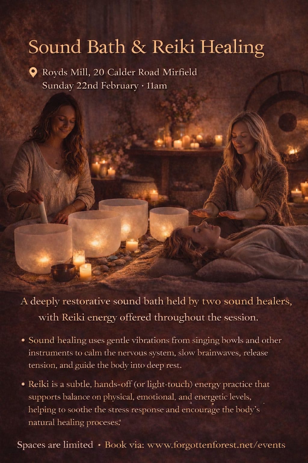 Imbolc & Full Moon Witch Circle – Honouring New Beginnings Sunday 1st February | 6–8pm | £25 A cosy, candlelit witch circle celebrating Imbolc and the Full Moon. Join us for soup, cake and cocoa, calling in the elements, a simple seasonal craft, oracle card guidance and a deeply nourishing sound healing journey. A warm, welcoming space to rest, reflect and gently call in new beginnings.